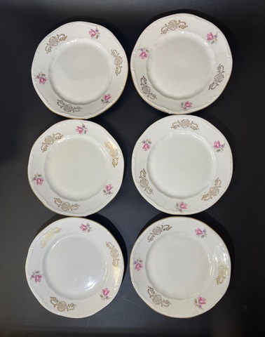 Набор из 6-ти десертных тарелок украшенных цветочным декором, фарфор, деколь, золочение, Triptis Porzellan, Германия, 1949-1960 гг.