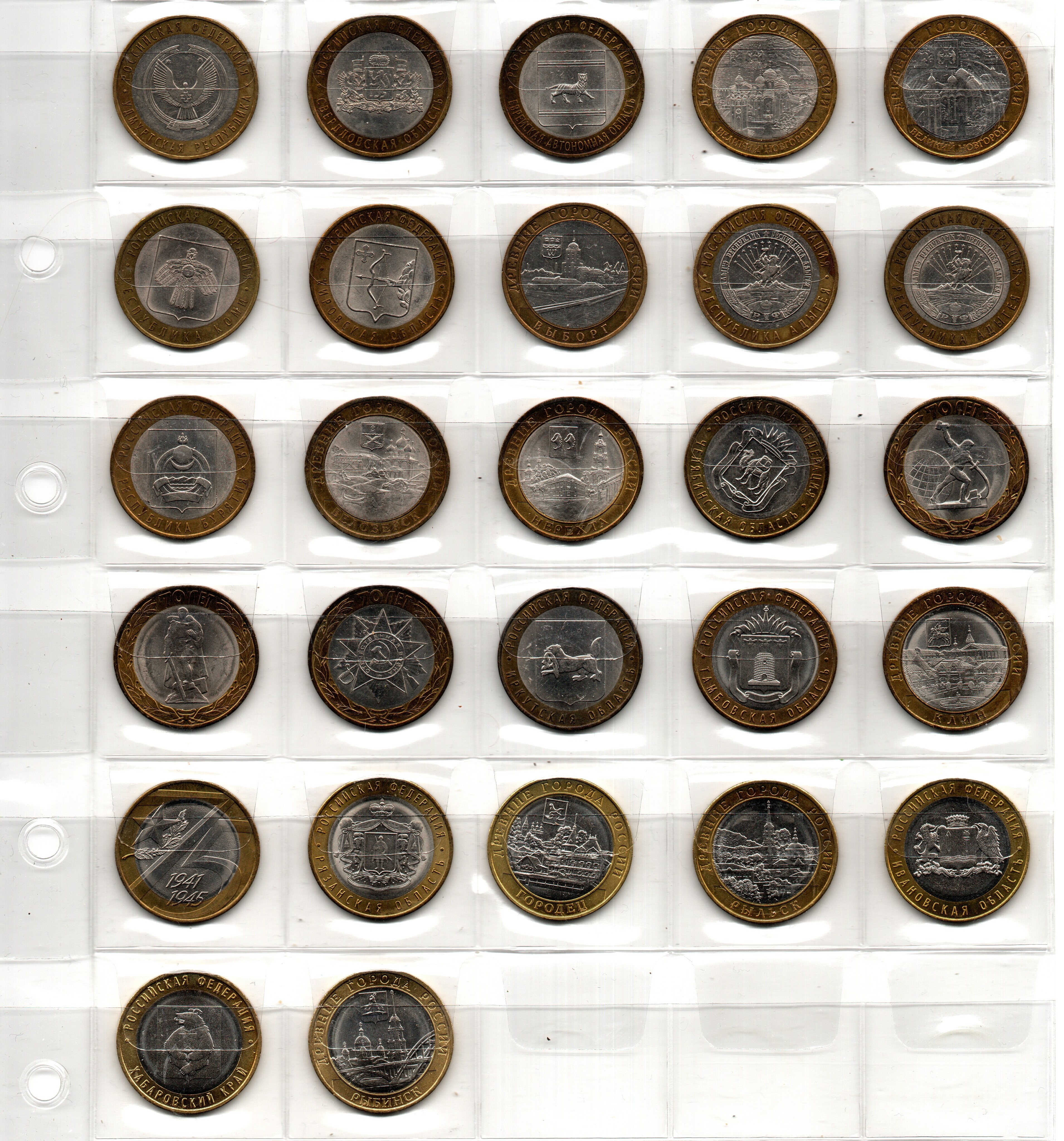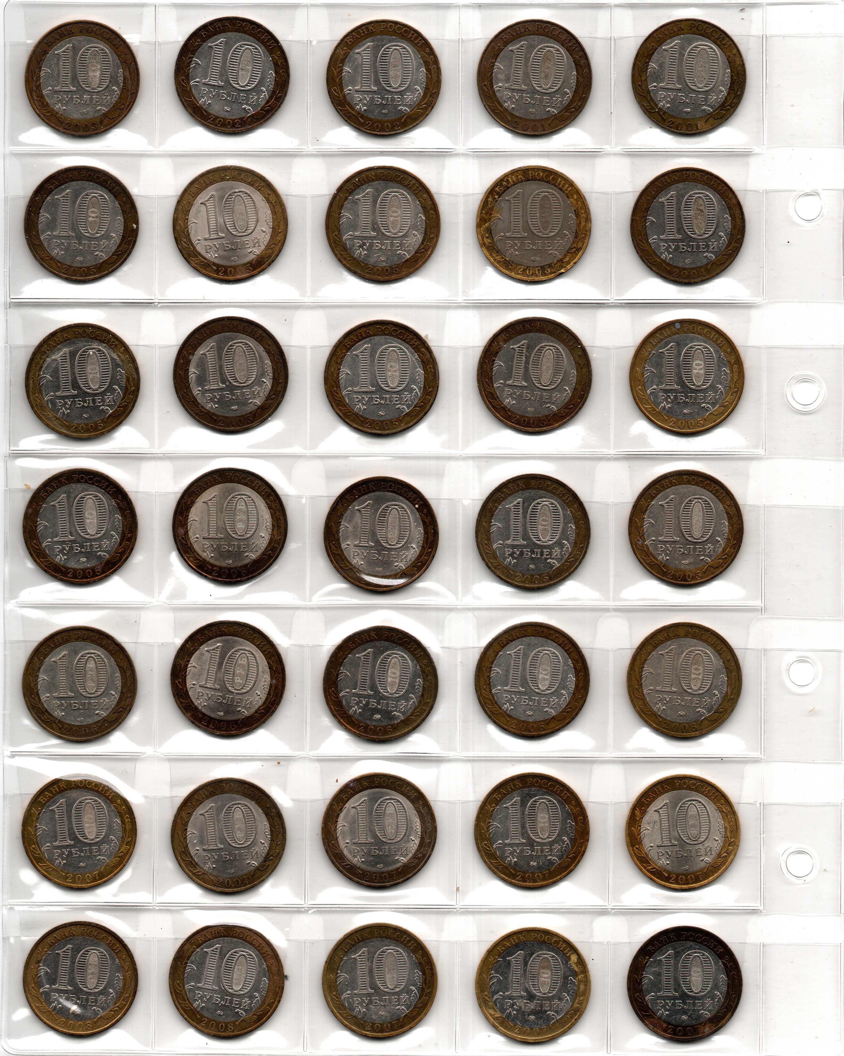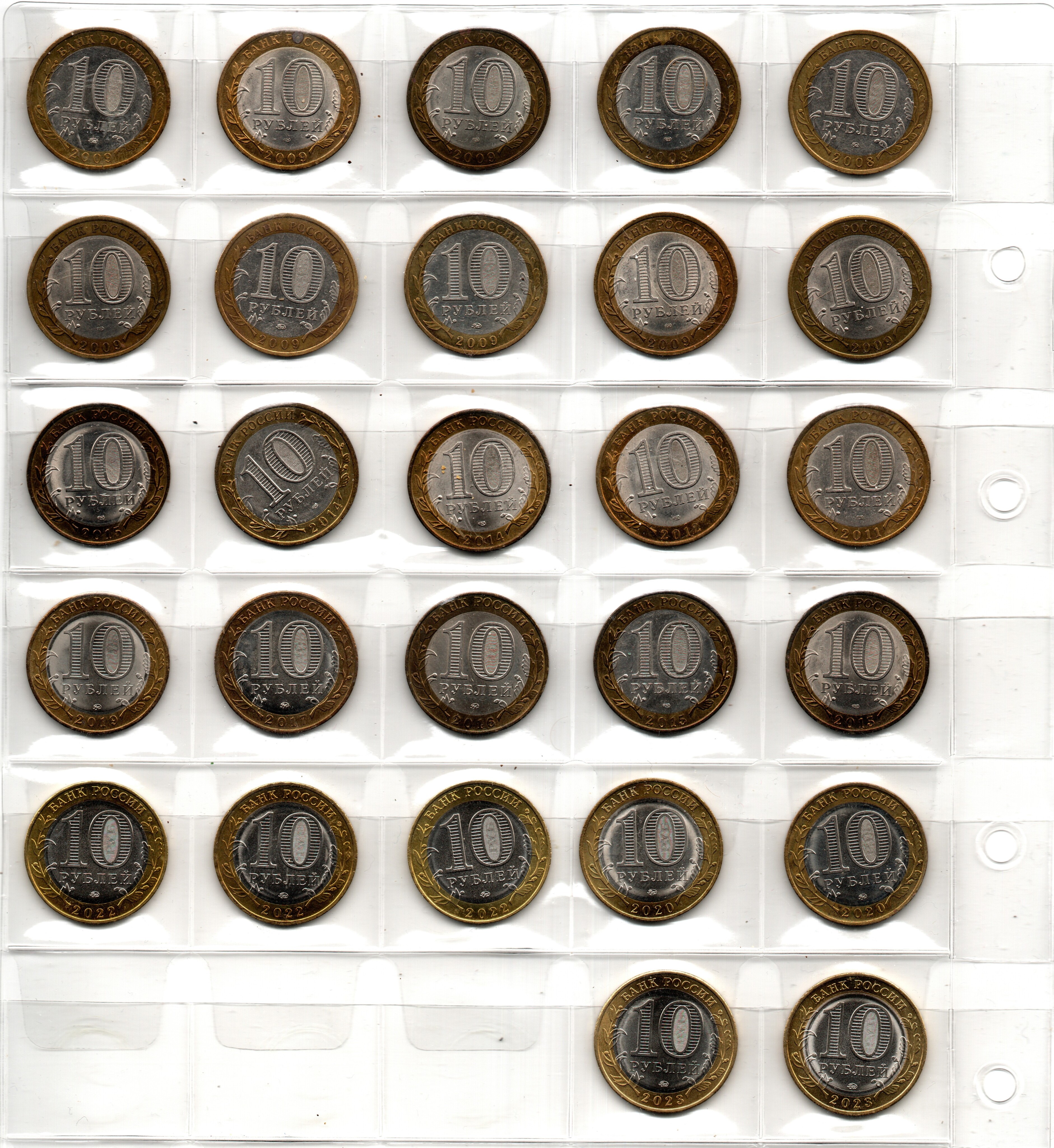 Набор из 62 монеты 10 рублей биметалл - без повторов - 2000-2023 гг.
