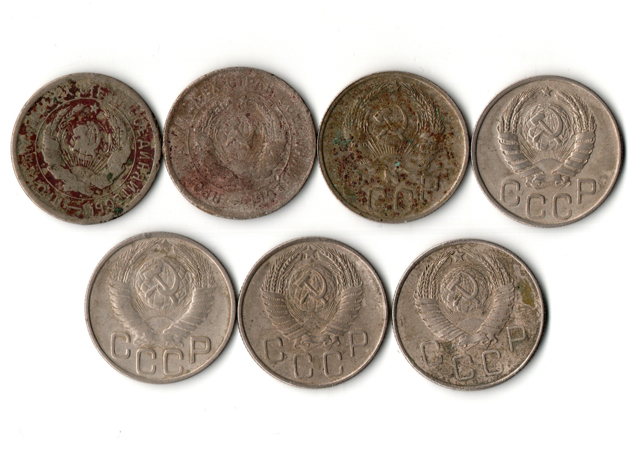 Набор из 7 монет 20 копеек 1931, 33,36, 46, 48, 54, 57 гг. ранний СССР