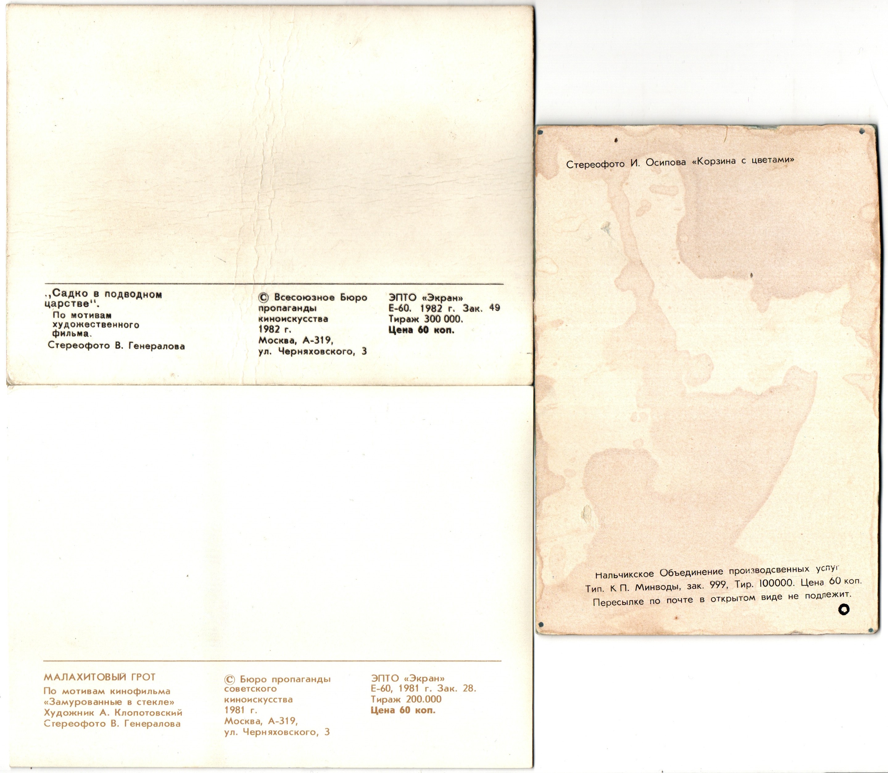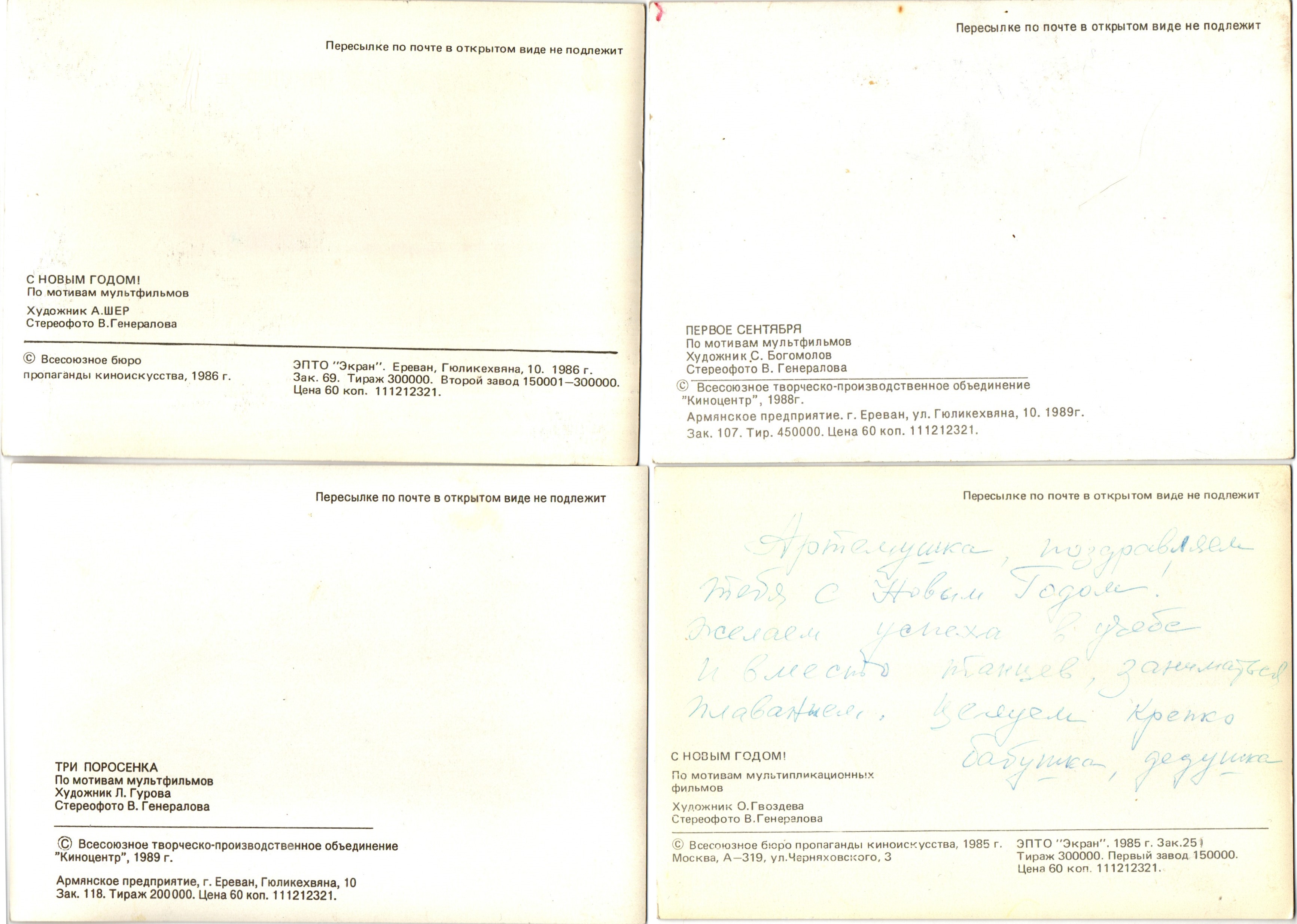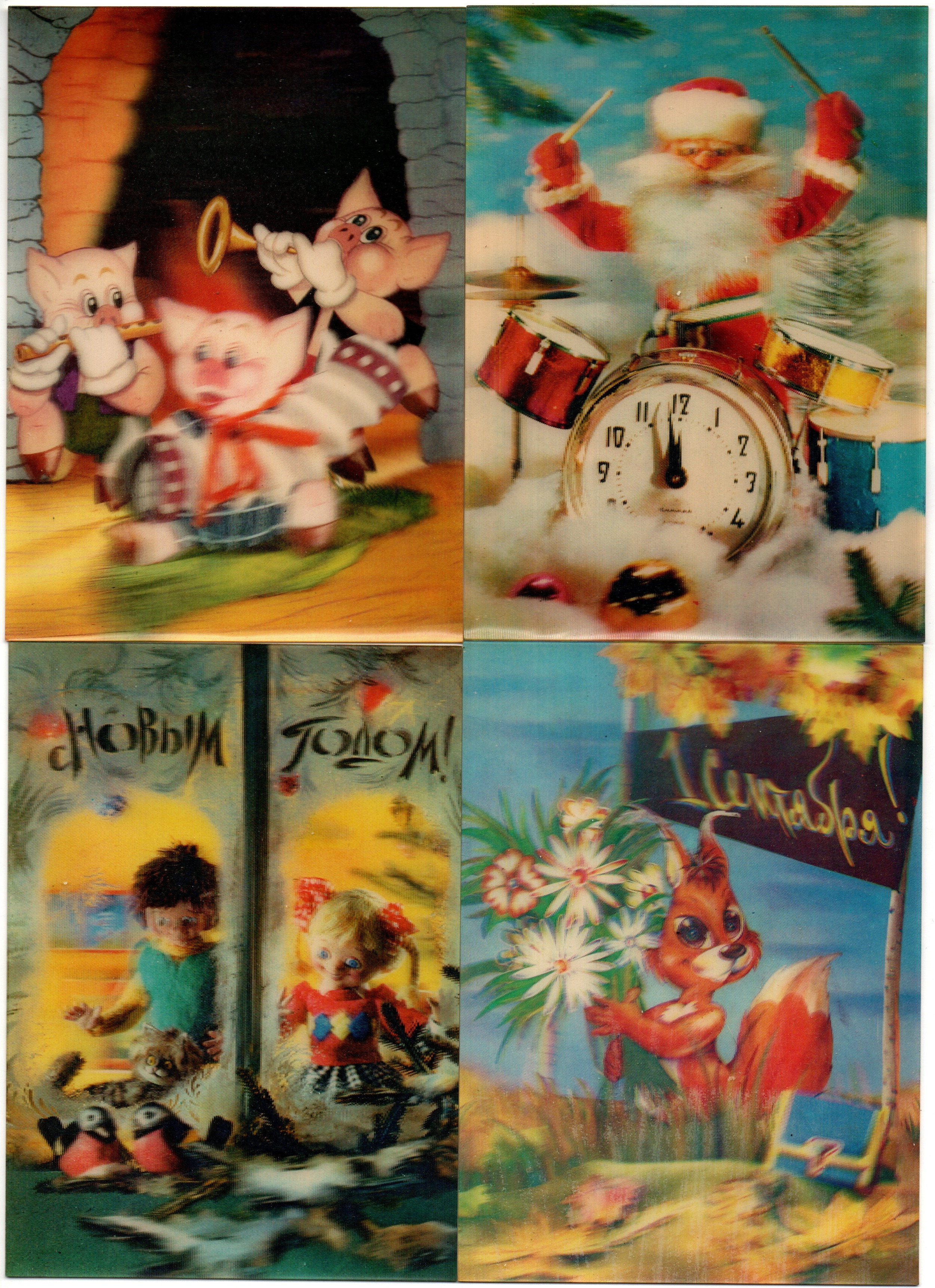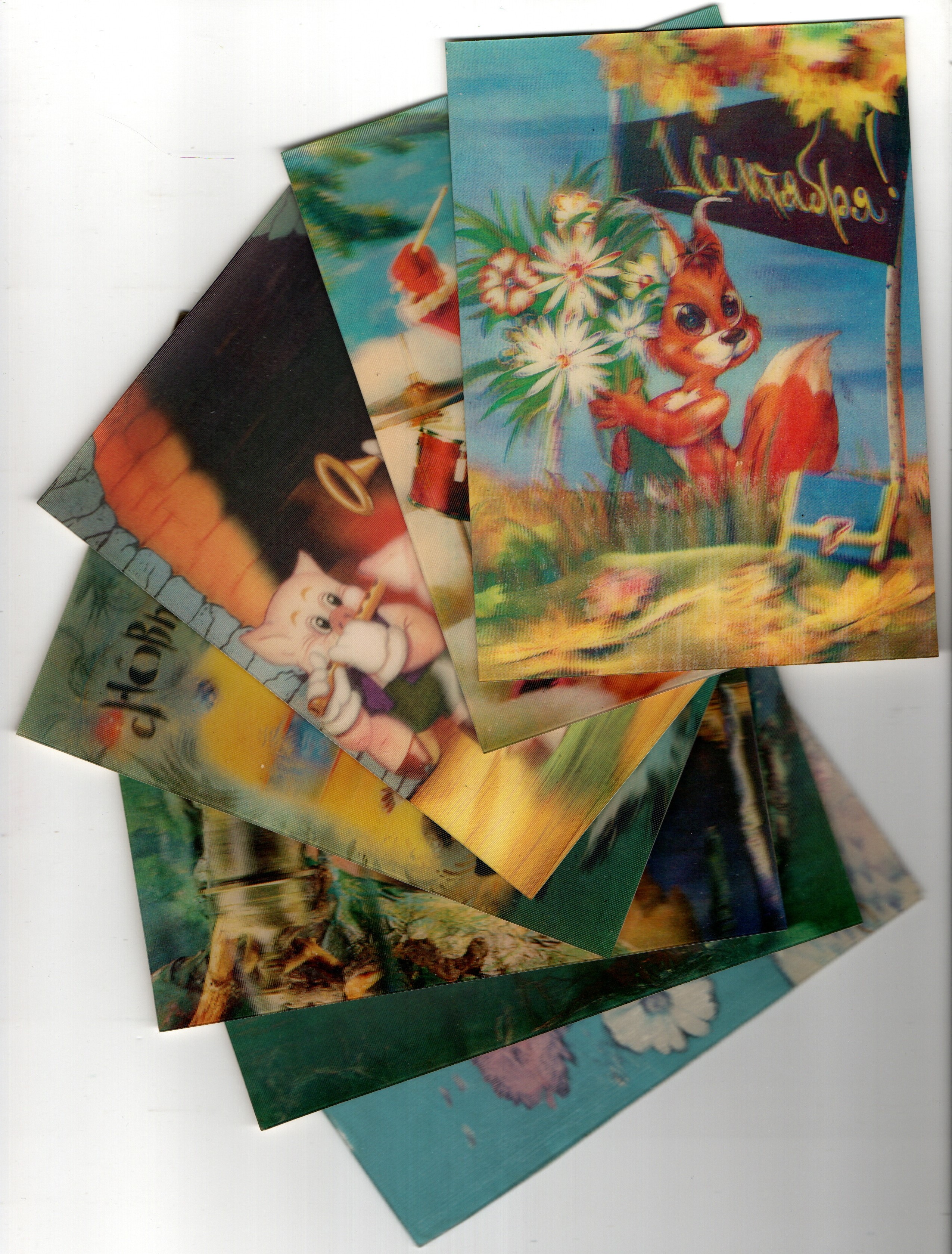 Набор из 7 стерео открыток СССР. Мультфильмы СССР и др.