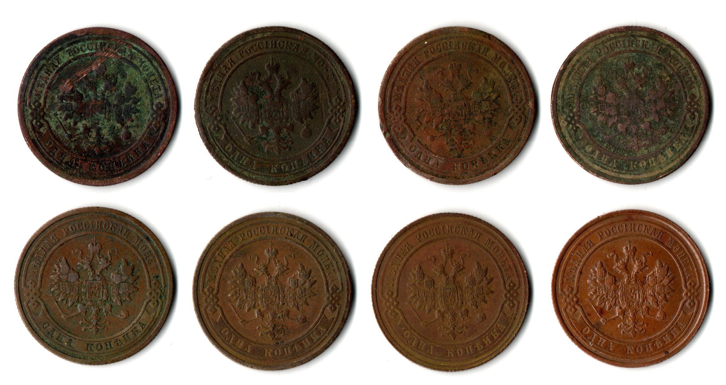 Набор из 8 монет 1 копейка 1899, 1903, 09, 10, 11, 13, 14, 15 гг. Николай II