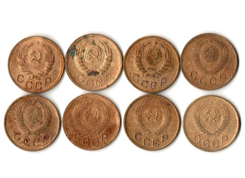 Набор из 8 монет 1 копейка 1936, 38, 45, 48, 49, 51, 54, 55 гг. Ранний СССР