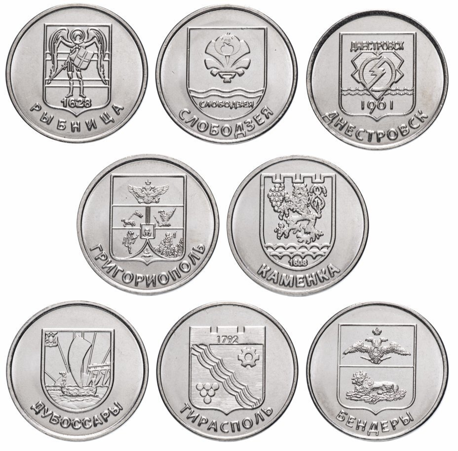 Набор из 8 монет 1 рубль. Приднестровье. Серия "Гербы городов Приднестровья" 2017 год. UNC