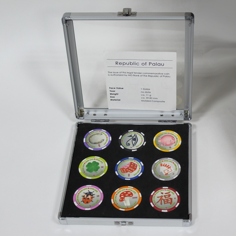 Набор из 9 монет 1 доллар Монеты на удачу. Казино. Фишки. Композитные материалы. о. Палау