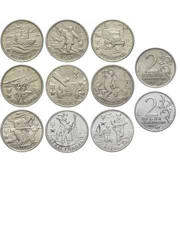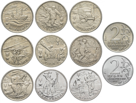 Комплект из 9 монет 2 рубля "Города Герои" 2000; 2017 год