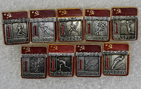 Набор из 9 значков "1 разряд" (без повторов) UNC