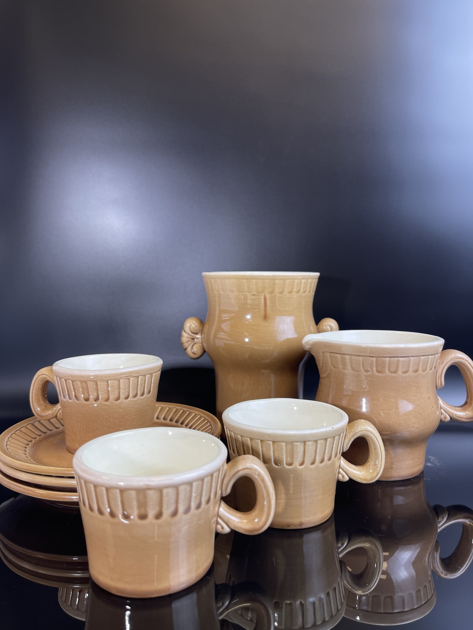 Набор кофейный на 3 персоны (8 предметов), клеймо Конаковский ФЗ ЗИК, фаянс, глазурь, винтаж.