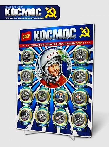 В наборе: Спутник 1, Спутник 2, Спутник 3, Космический корабль "Восход", Космический корабль "Восток", Космический корабль "Союз", Межпланетная станция "Венера", Межпланетная станция "Вега", Межпланетная станция "Марс", Комплекс Энергия-Буран, Космическая станция "Салют", Космическая станция "Мир"
