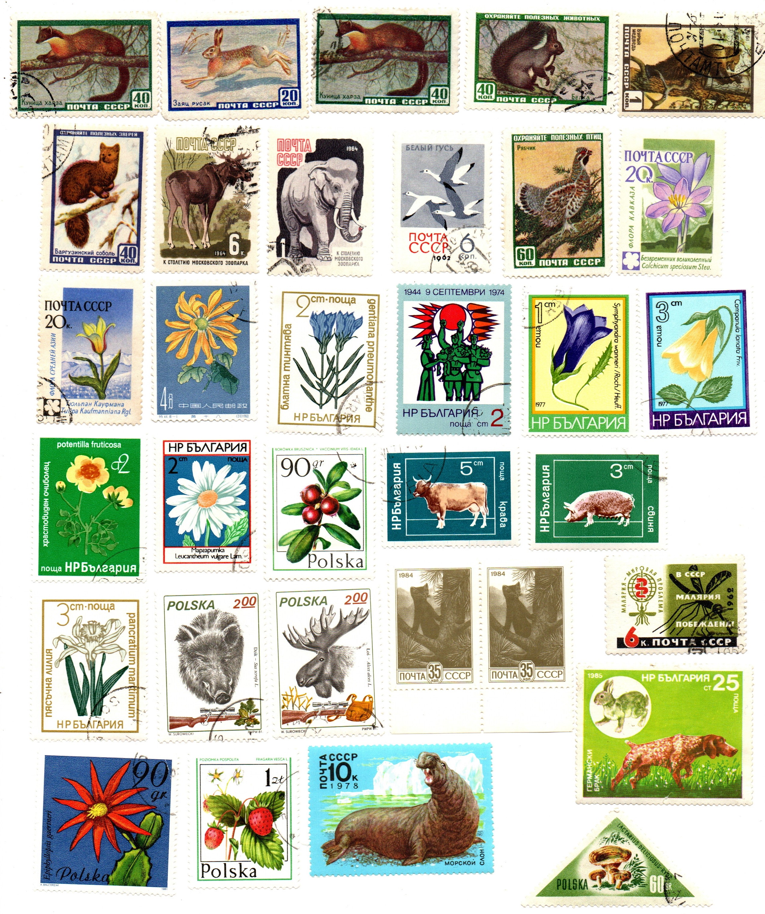 Набор марок Флора фауна 33 шт. Польша Болгария СССР XF