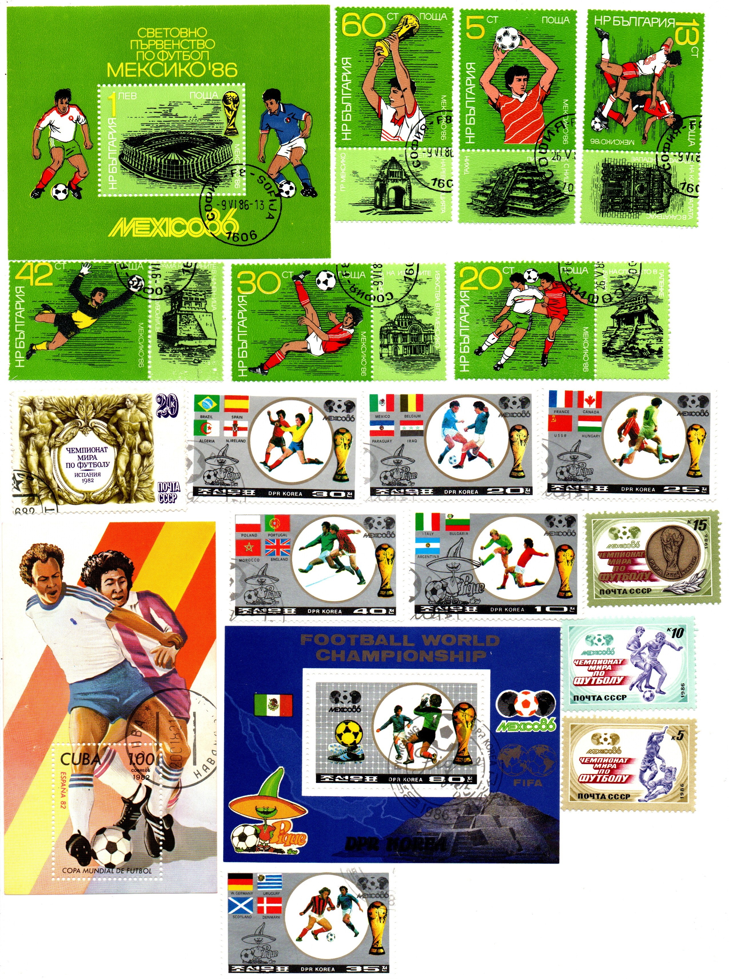 Набор марок Футбол 3 блока и 16 марок Мехико 86 Болгария Куба Корея СССР XF