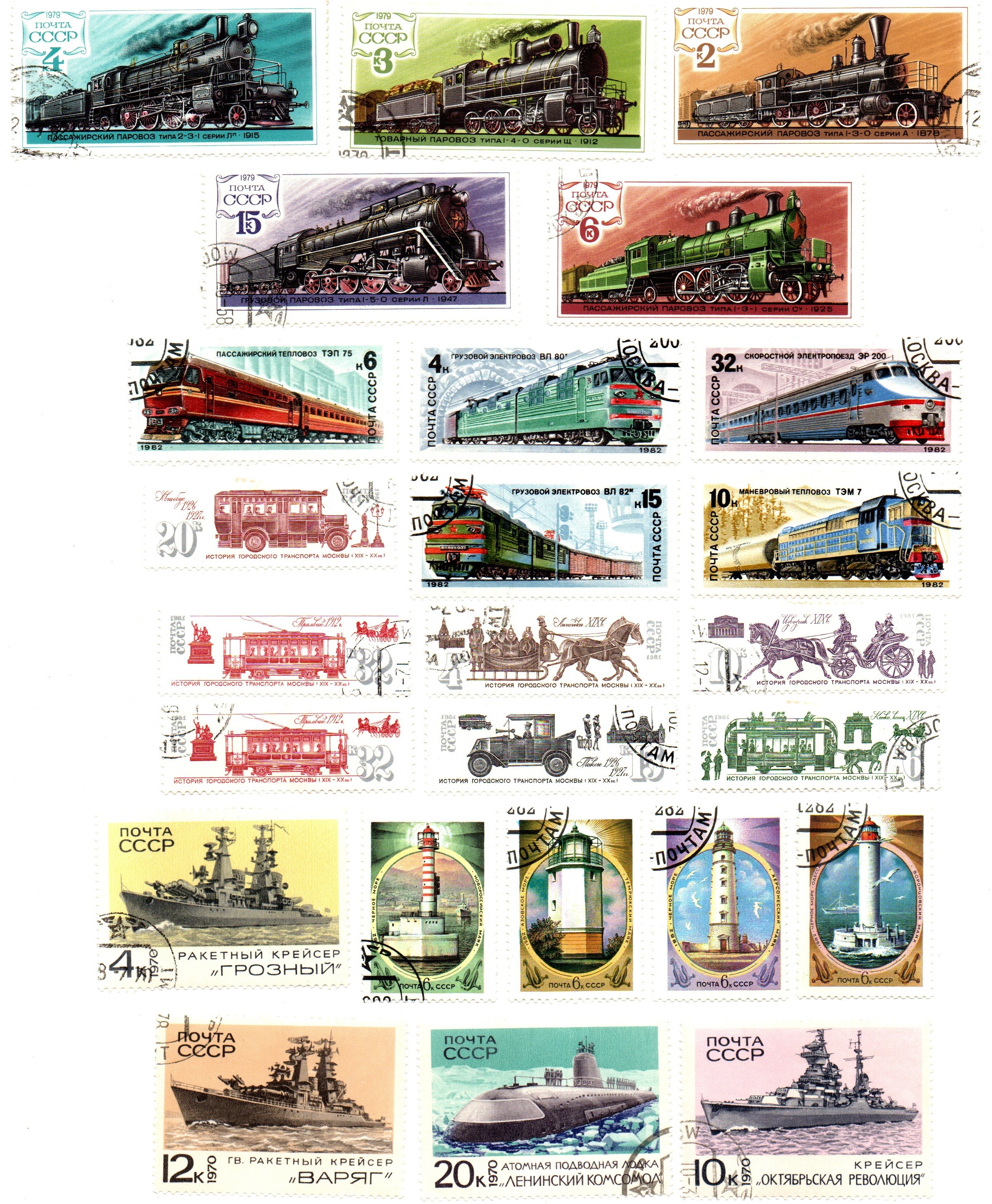 Набор марок Паровозы корабли СССР 25 шт. 1970,79,81 гг. XF