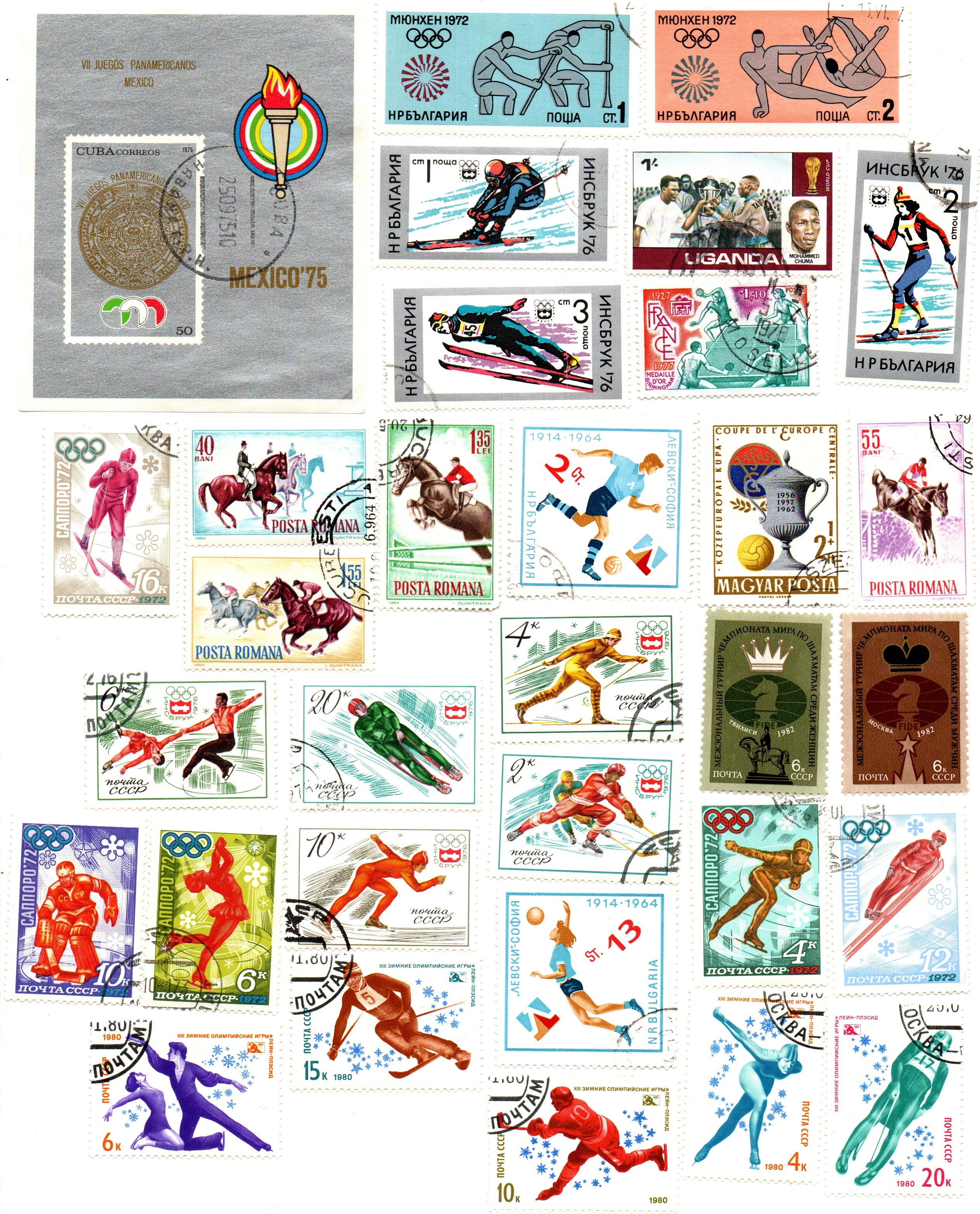 Набор марок Спорт Фигурное лыжи конный шахматы 32 шт. 1964-80 Мехико 75 Болгария СССР др. XF