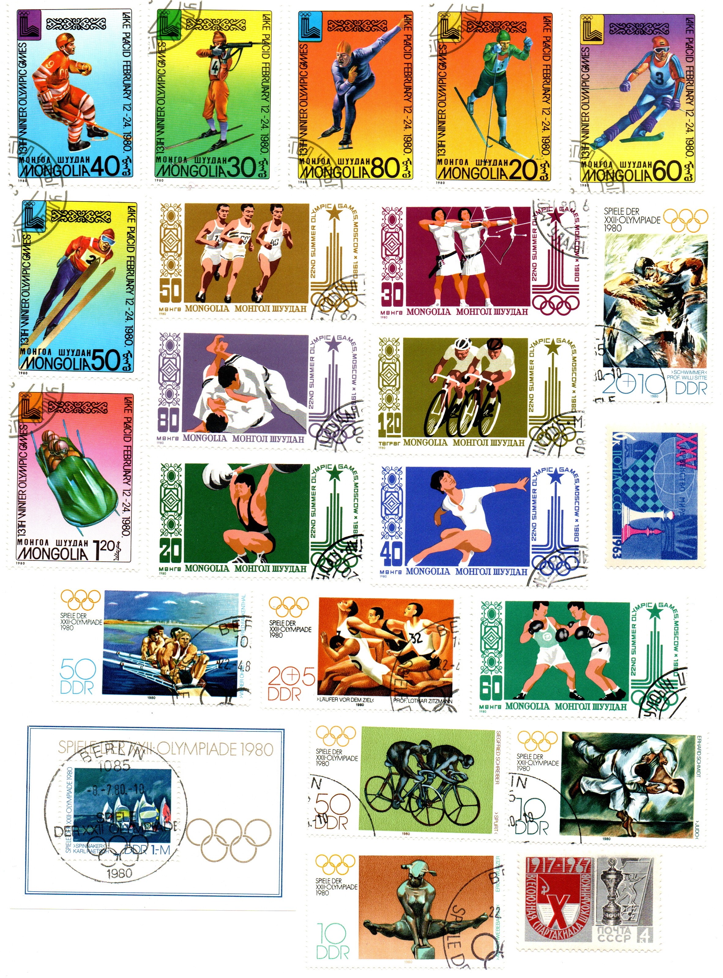 Набор марок Спорт Лыжи биатлон шахматы и др. 23 шт. Монголия Германия XF