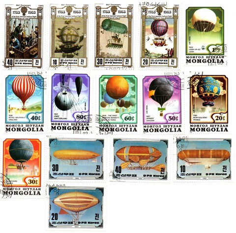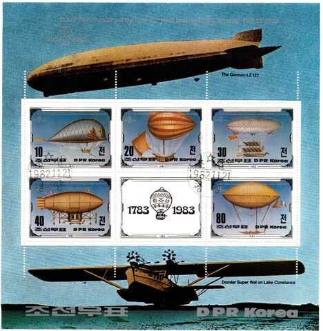 Набор марок,блоки Воздухоплавательные аппараты Дирижабли Воздушные шары Корея 1983 г. XF