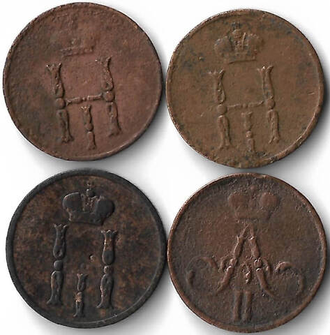 Набор медных монет 1851-1858 ЕМ (4 монеты) Денежка (VG-F)