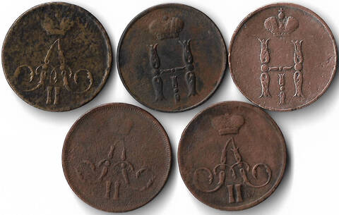 Набор медных монет 1854-1860 года (5 монет) 1 копейка ЕМ (F)