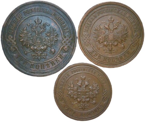 Набор медных монет 1914 СПБ (3 монеты) 1, 2 и 3 копейки (XF-AU)