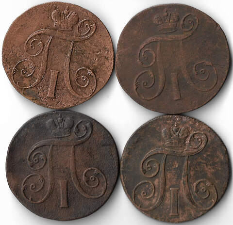 Набор медных монет 2 копейки 1798-1801 ЕМ (4 монеты) без повторов (F)