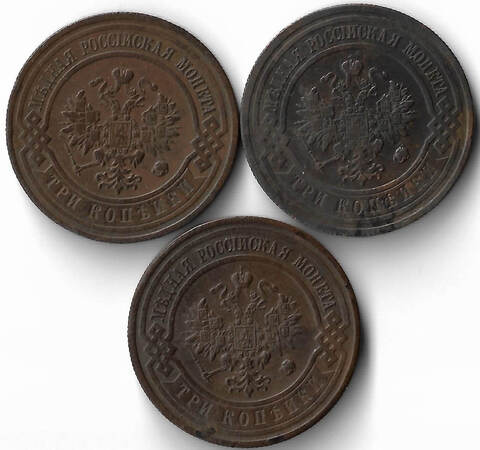 Набор медных монет 3 копейки (3 монеты) 1912-1915 СПБ (XF)