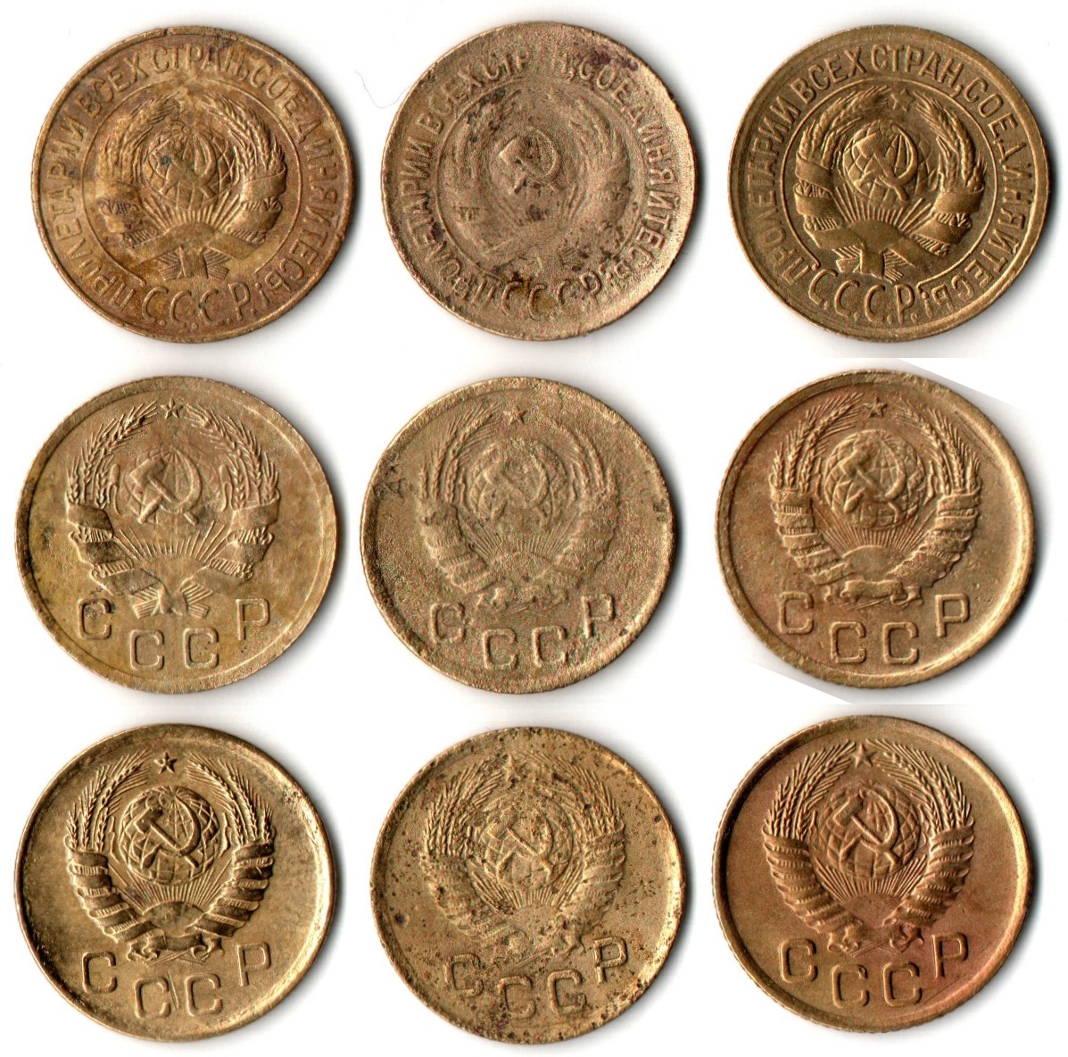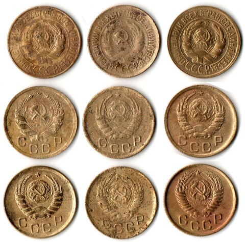 Набор монет 1 копейка 1928,31,33,36,37,38,39,50,54 (9 шт) (F-XF) (2)