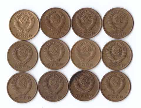 Набор монет (12шт) 2 копейки 1961,62,63,68-74,76,79гг. XF