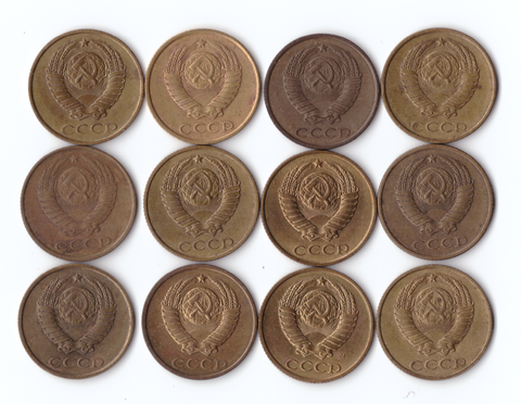 Набор монет (12шт) 2 копейки 1980-1991гг. XF