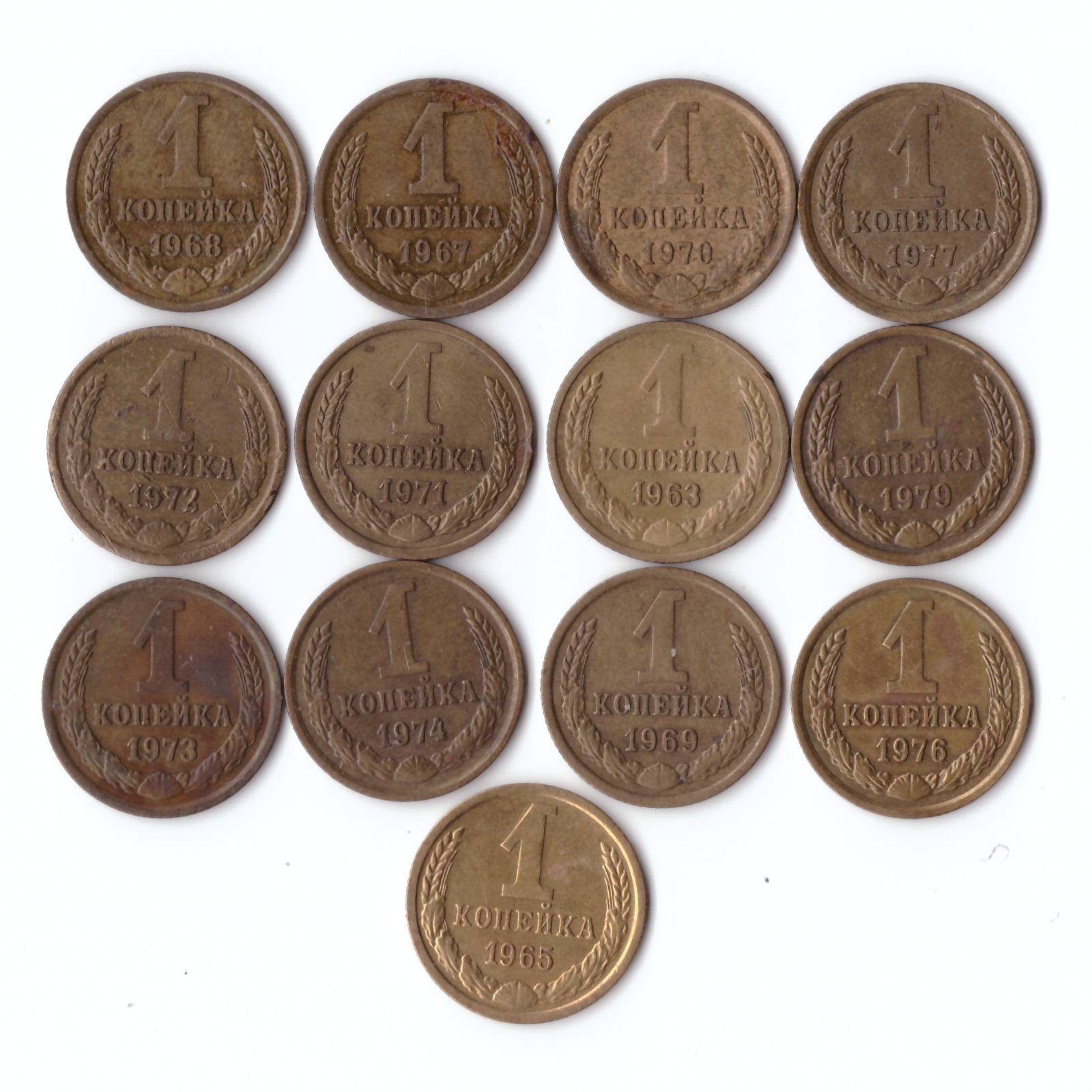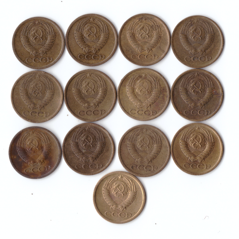 Набор монет (13шт) 1копейка 1963,65,67-79гг.Нет 75,78гг. XF