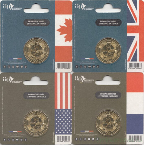 Набор монет 1/4 евро 80 лет высадке в Нормандии Франция 2024 г