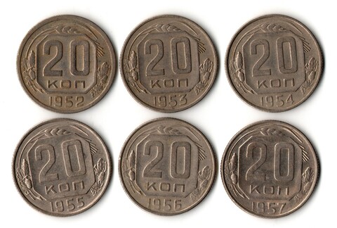 Набор монет 20 копеек - 1952 1953 1954 1955 1956 1957 годы - 6 штук