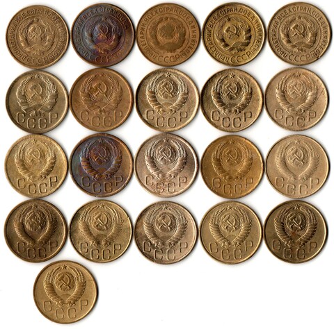 Набор монет 3 копейки 1926,30,31,32,34,35Н,36,37,38,39,40,,41,43,46,48,49,53,54,55,56,57 (21 шт) (F-XF) (1)
