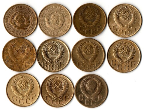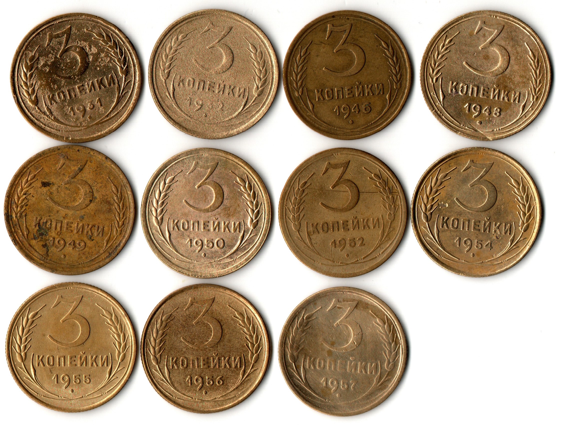 Набор монет 3 копейки 1931,32,46,48,49,50,52,54,55,56,57 (11 шт) (F-XF) (4)