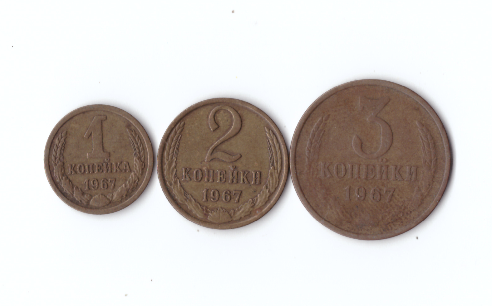 Набор монет (3 шт) 1967г. 1,2,3копейки XF