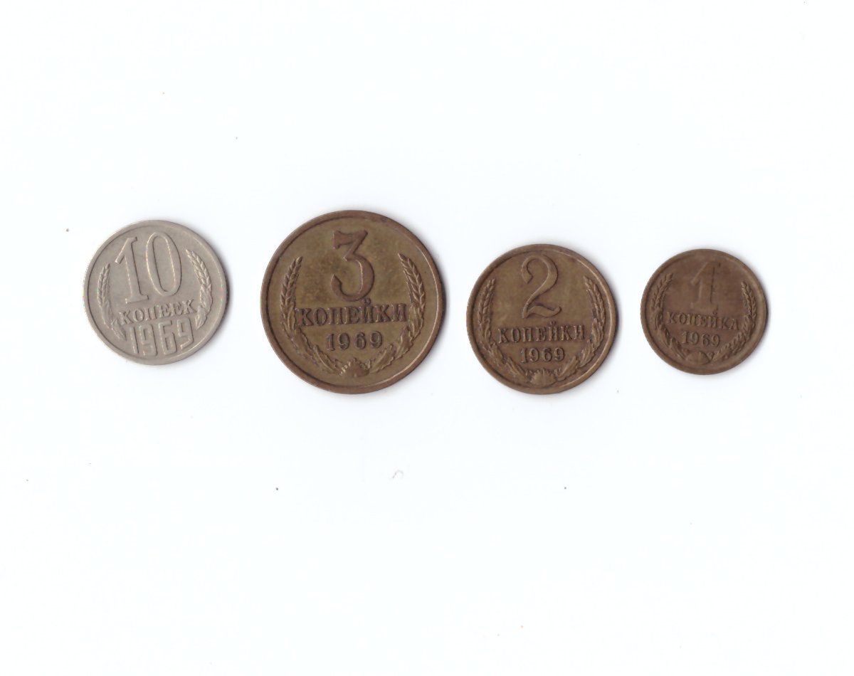 Набор монет (4 шт) 1969г. 1,2,3,10копеек XF