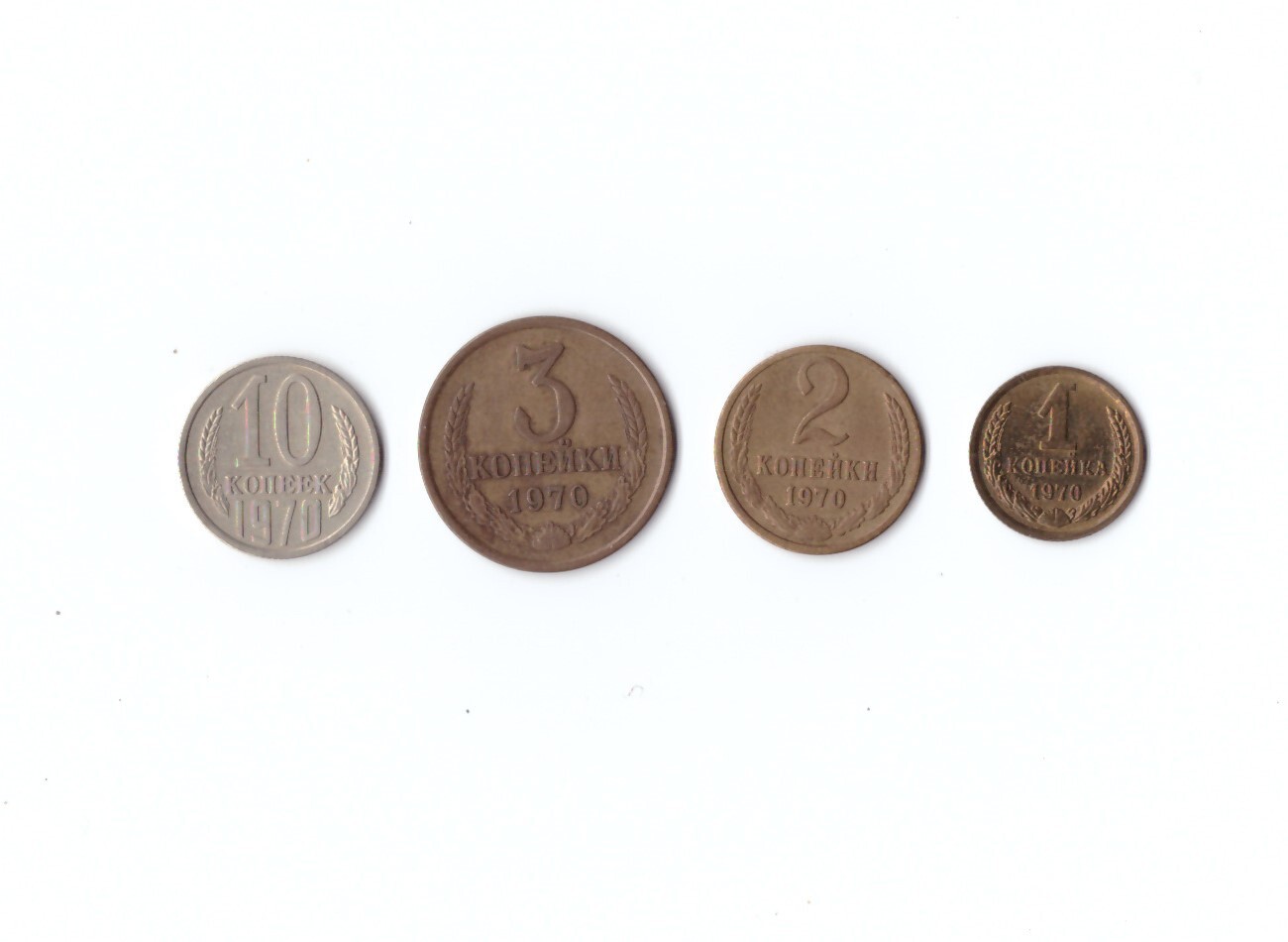 Набор монет (4 шт) 1970г. 1,2,3,10копеек XF