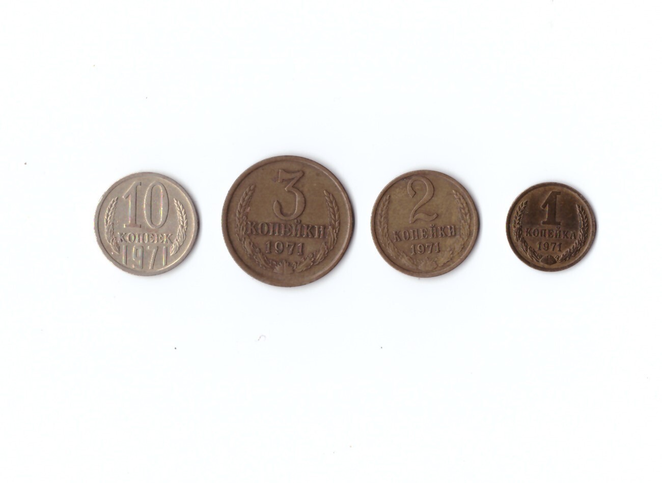 Набор монет (4 шт) 1971г. 1,2,3,10копеек XF