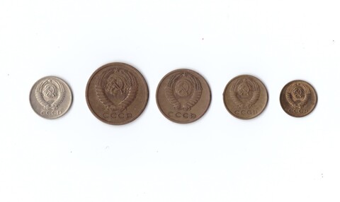 Набор монет (5 шт) 1974г. 1,2,3,5,10копеек XF