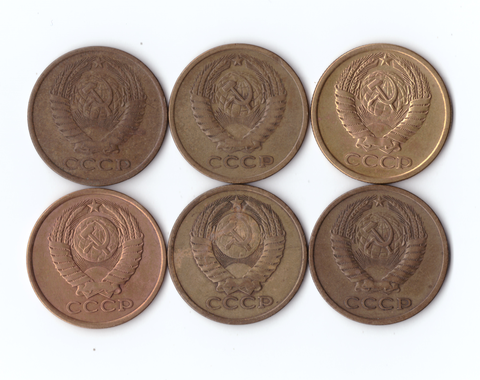 Набор монет (6шт) 5 копеек 1961,62,74,77,78,79гг. XF