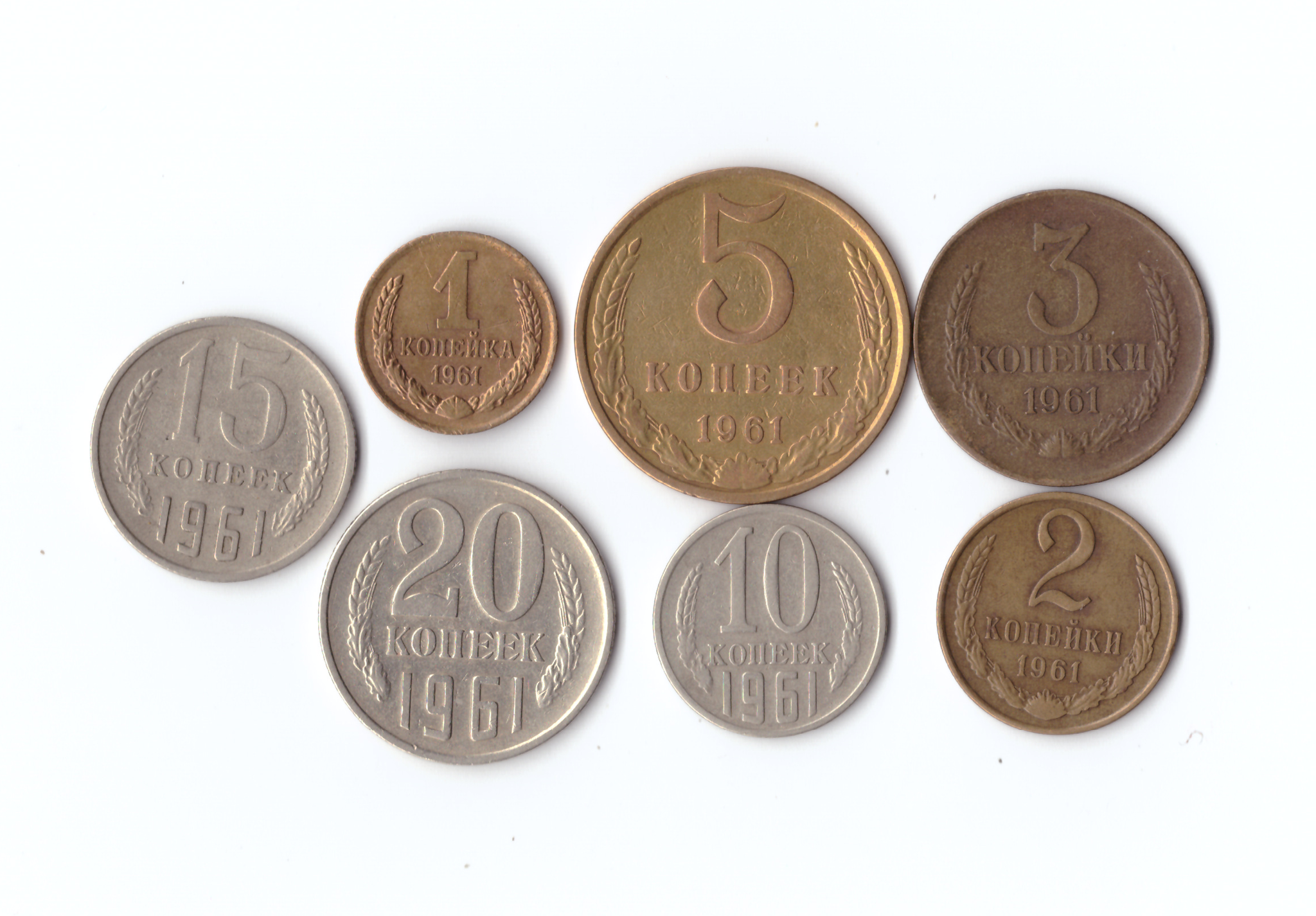 Набор монет (7 шт) 1961г. 1,2,3,5,10,15,20копеек XF