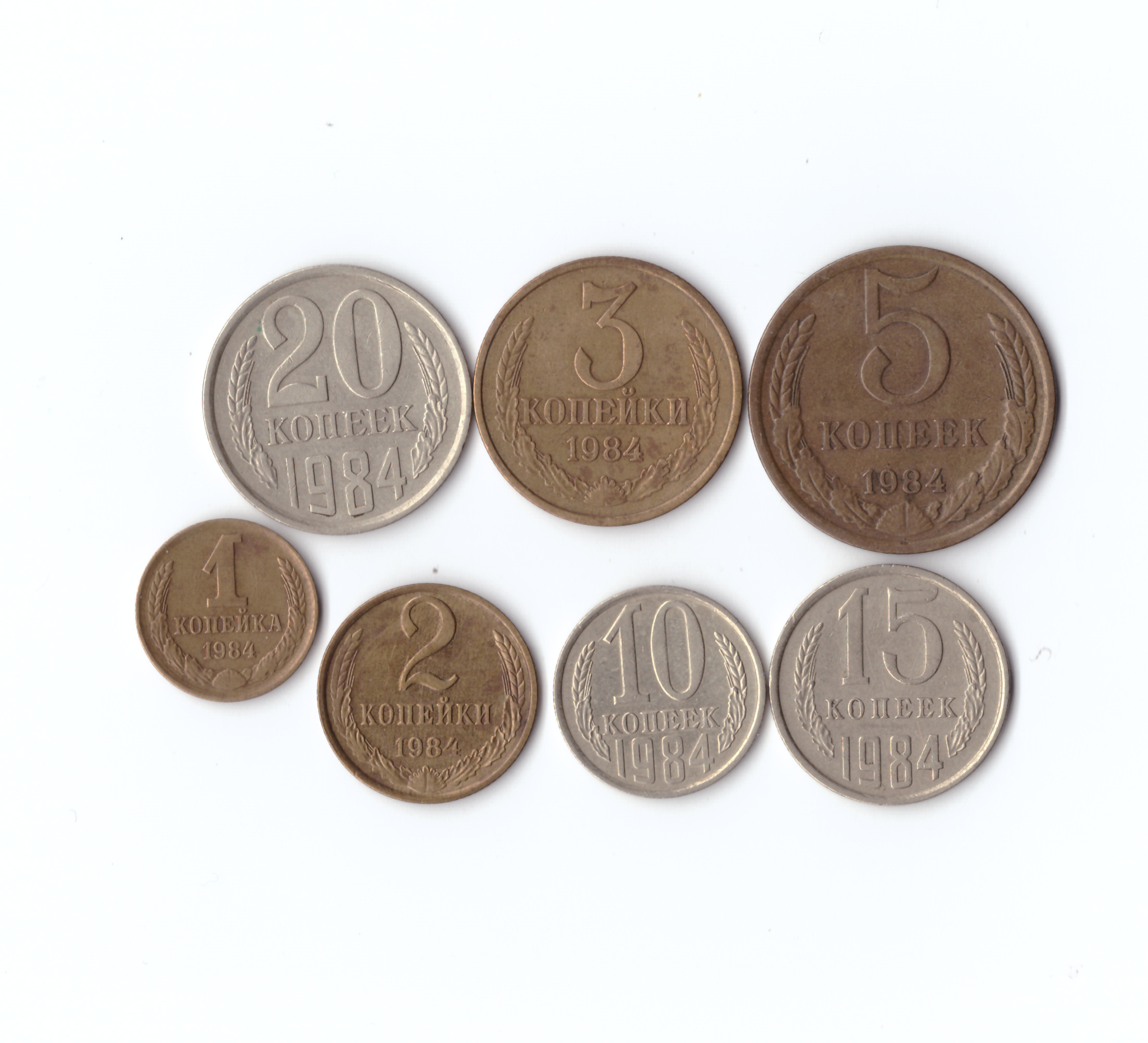 Набор монет (7 шт) 1984г. 1,2,3,5,10,15,20копеек XF