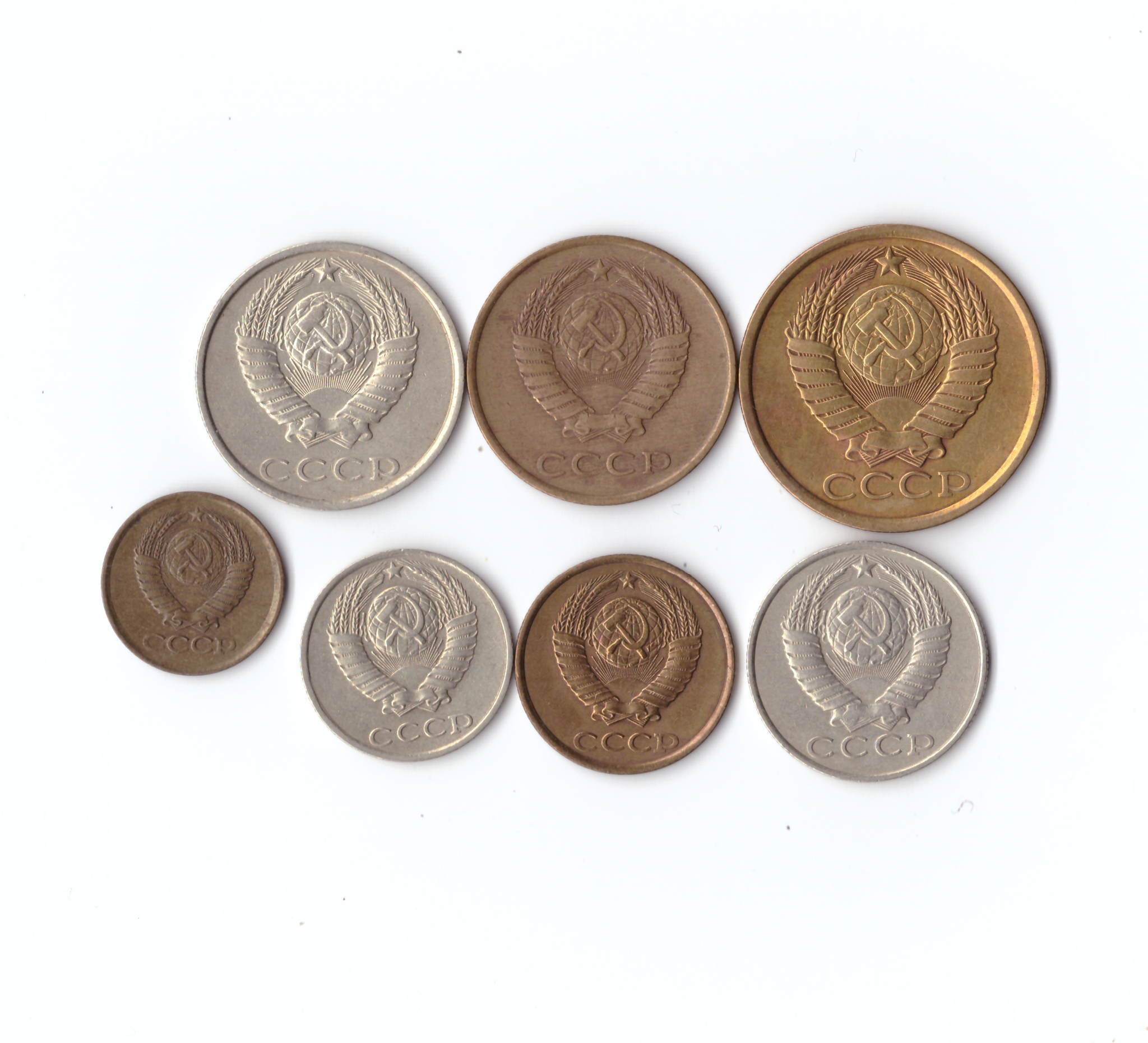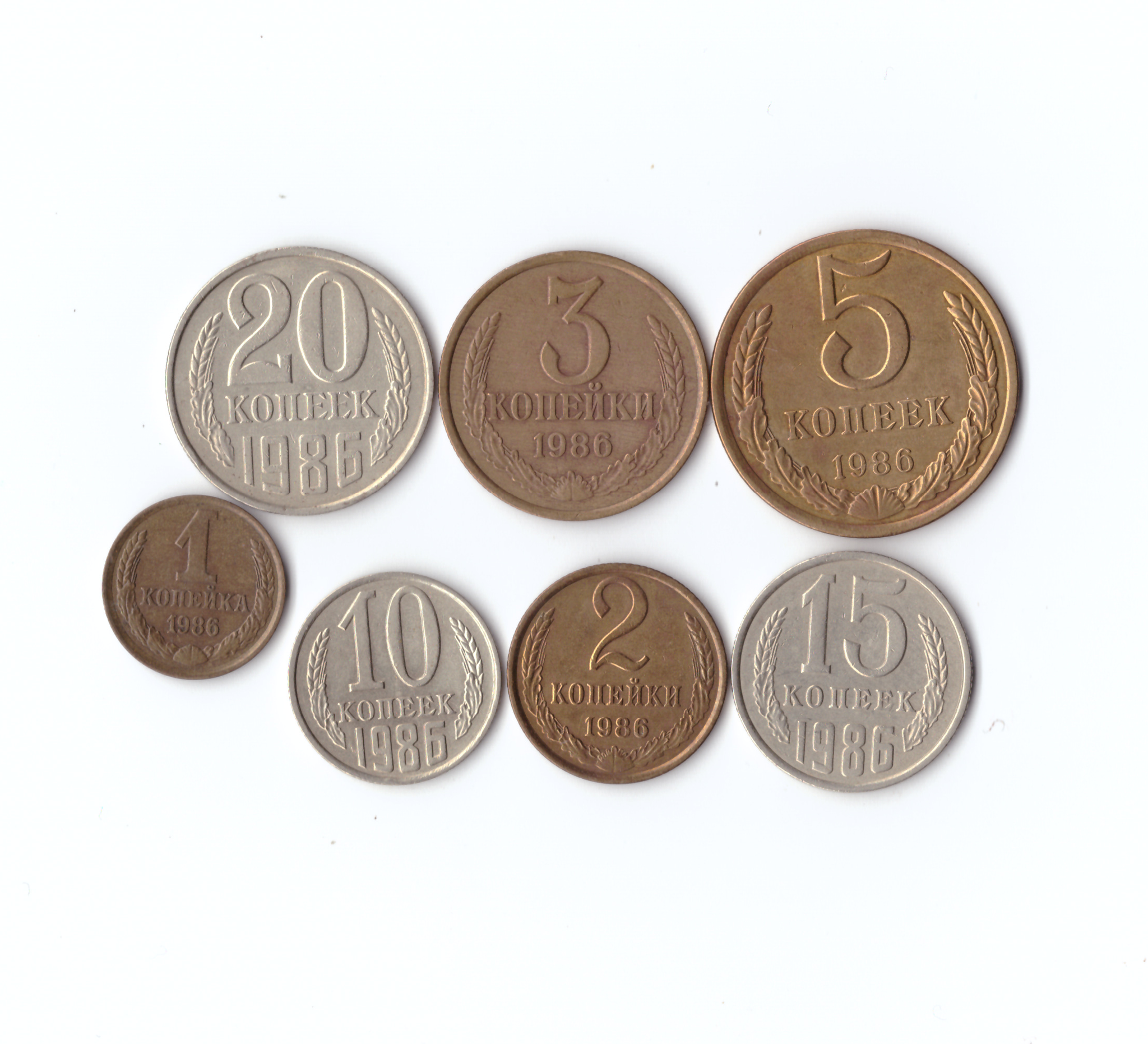 Набор монет (7 шт) 1986г. 1,2,3,5,10,15,20копеек XF