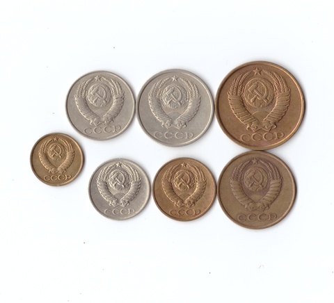 Набор монет (7 шт) 1987г. 1,2,3,5,10,15,20копеек XF