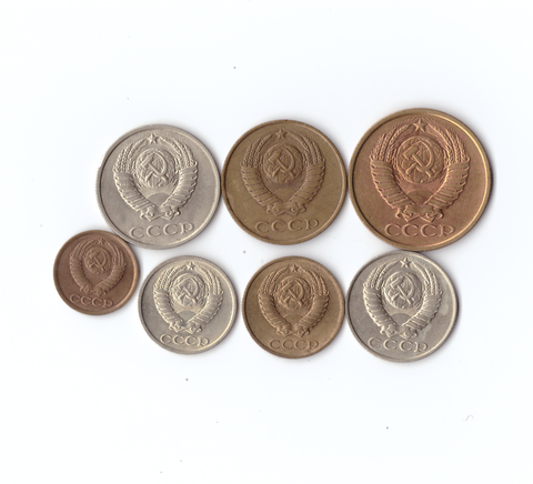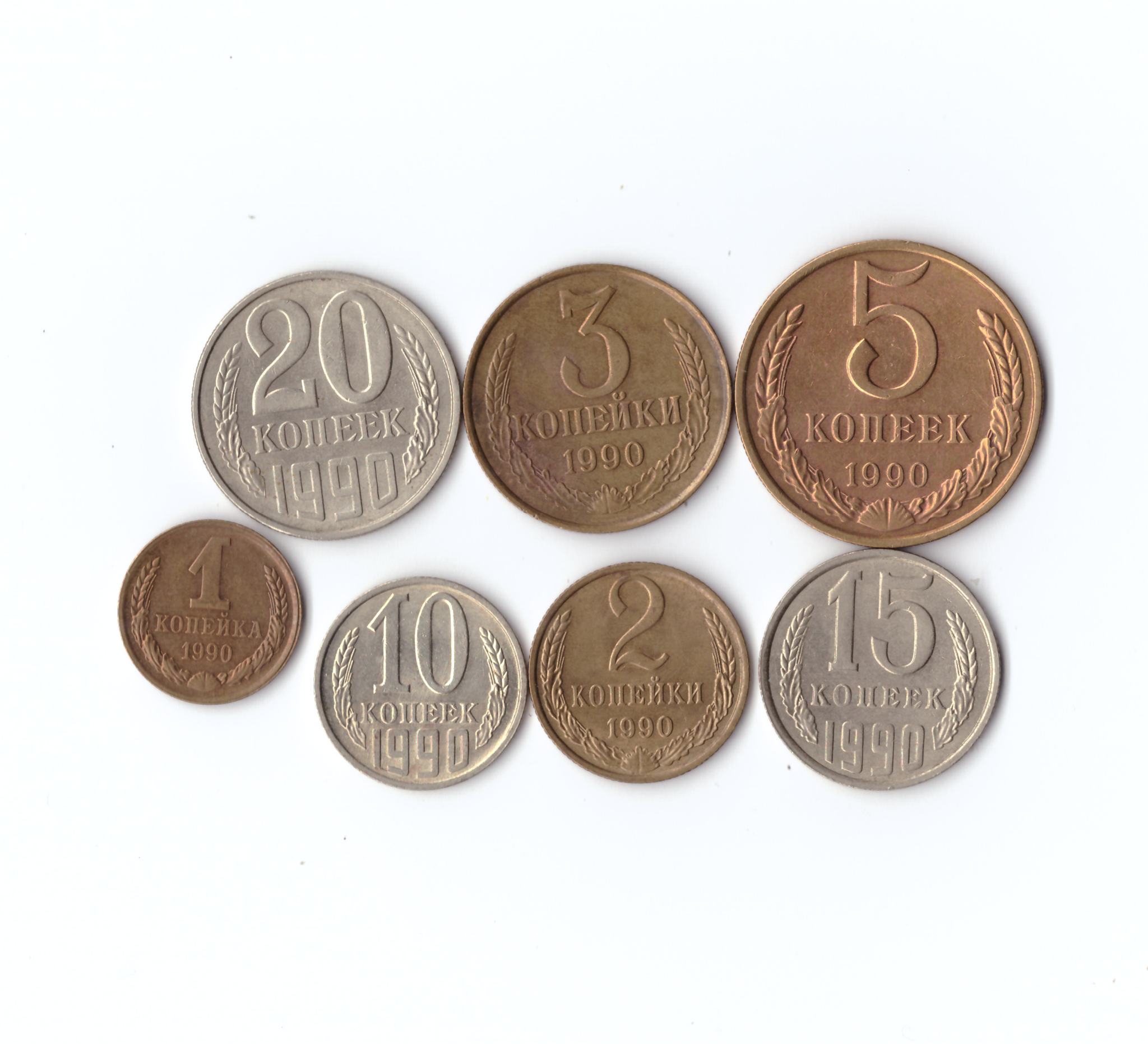 Набор монет (7 шт) 1990г. 1,2,3,5,10,15,20копеек XF