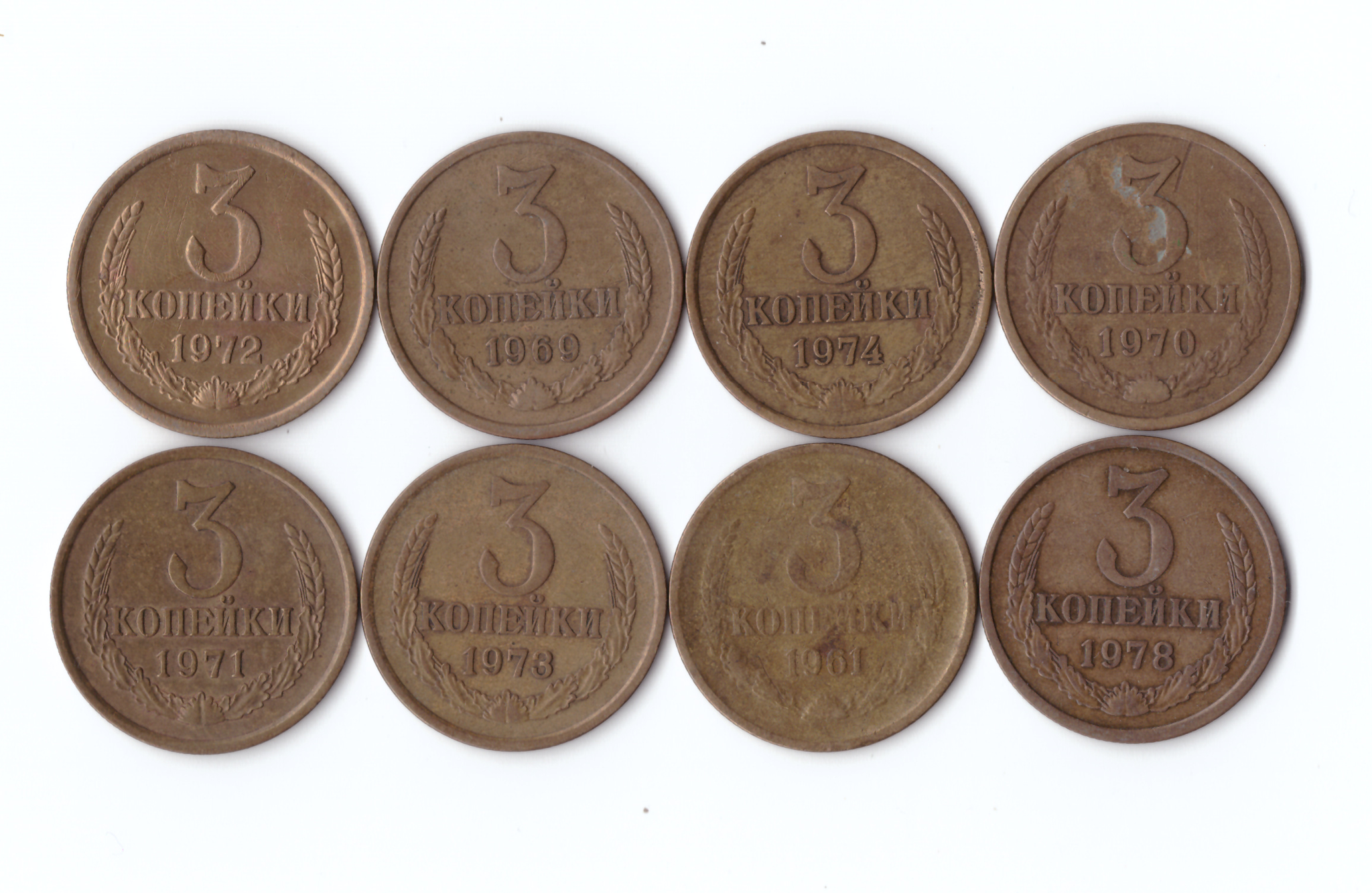 Набор монет (8шт) 3 копейки 1961,69-74,78гг. XF