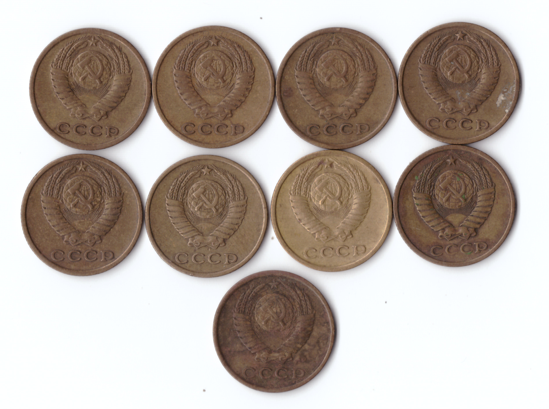 Набор монет (9шт) 2копейки 1961,63,70,71,72,73,74,76,79гг. XF