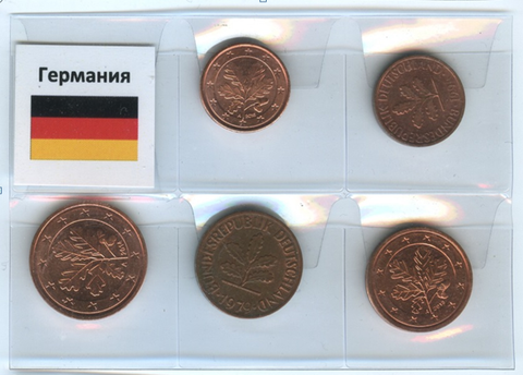 В набор входят 5 монет в прозрачных листах. Для удобства хранения и поиска, в ячейке будет флаг страны и надпись.