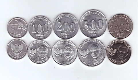 Набор монет Индонезии (50, 100, 200, 500 и 1000 рупий) 1999-2016 гг. XF-AU