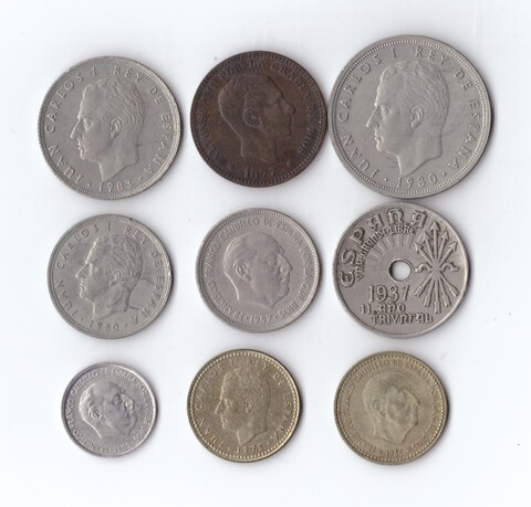 Набор монет Испания 9 шт. Разные . 1877, 1937,1903,1906,57,59,66,82 гг. XF