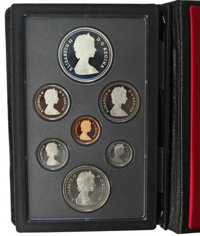 Набор монет Канады 1986 год, в кожаном футляре (Серебро, никель, бронза). PROOF