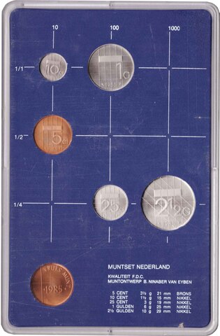 Набор монет Нидерландов 1985 UNC в пластиковой упаковке