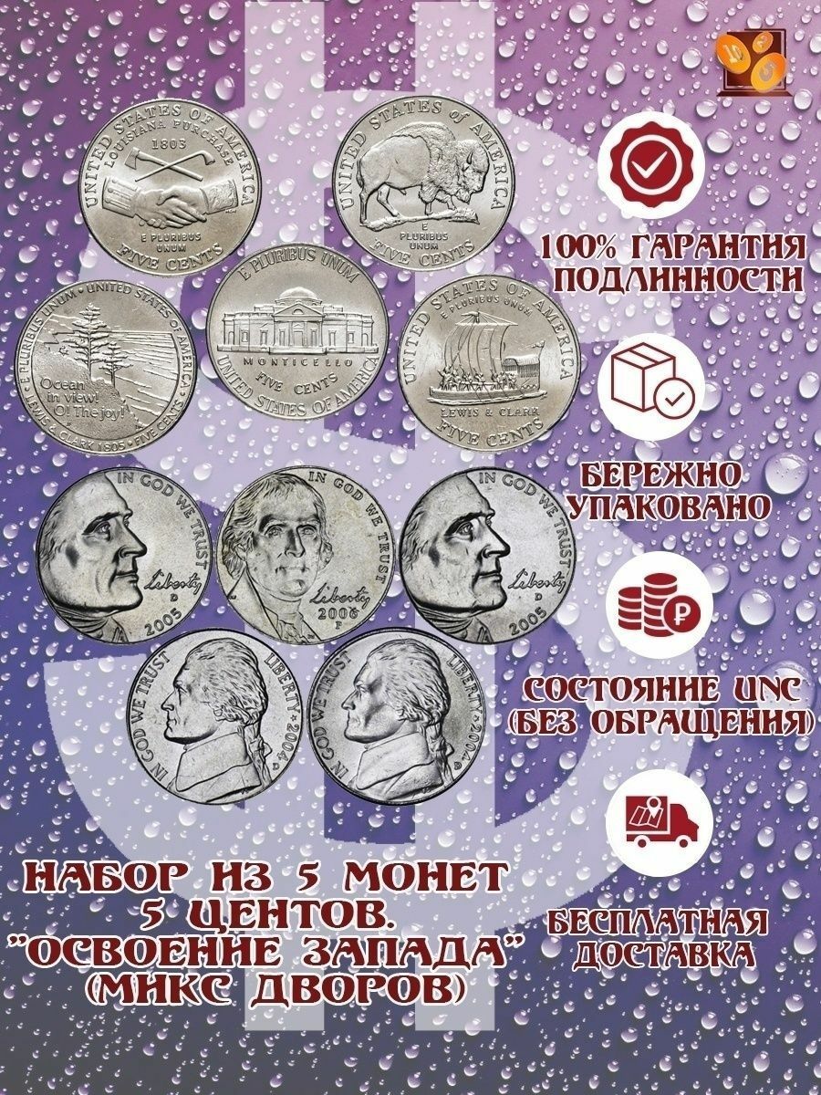 Набор монет по 5 центов. "Освоение запада" (микс дворов)